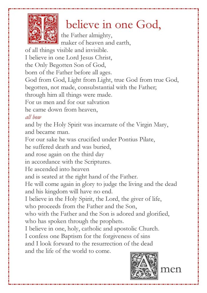 Positive post Sunday, January 14, 2024…. Week 359. This week’s PPS is short and to the point. Attached is the Nicene Creed, which we recite, with conviction and reflection, aloud every Sunday at Mass. And, every Sunday at Mass, I also lean over and remind my grandson Christian that this Creed, which he can recite by memory, is the foundation of our faith. It’s a full and complete doctrine of what I, and all Catholics and many Christians, believe. I am so grateful that I believe in one God, our Father almighty, who sent Jesus, His only son our Lord, down to earth from Heaven to open the gates of Heaven for us sinners to join him one day. We are truly loved and blessed.