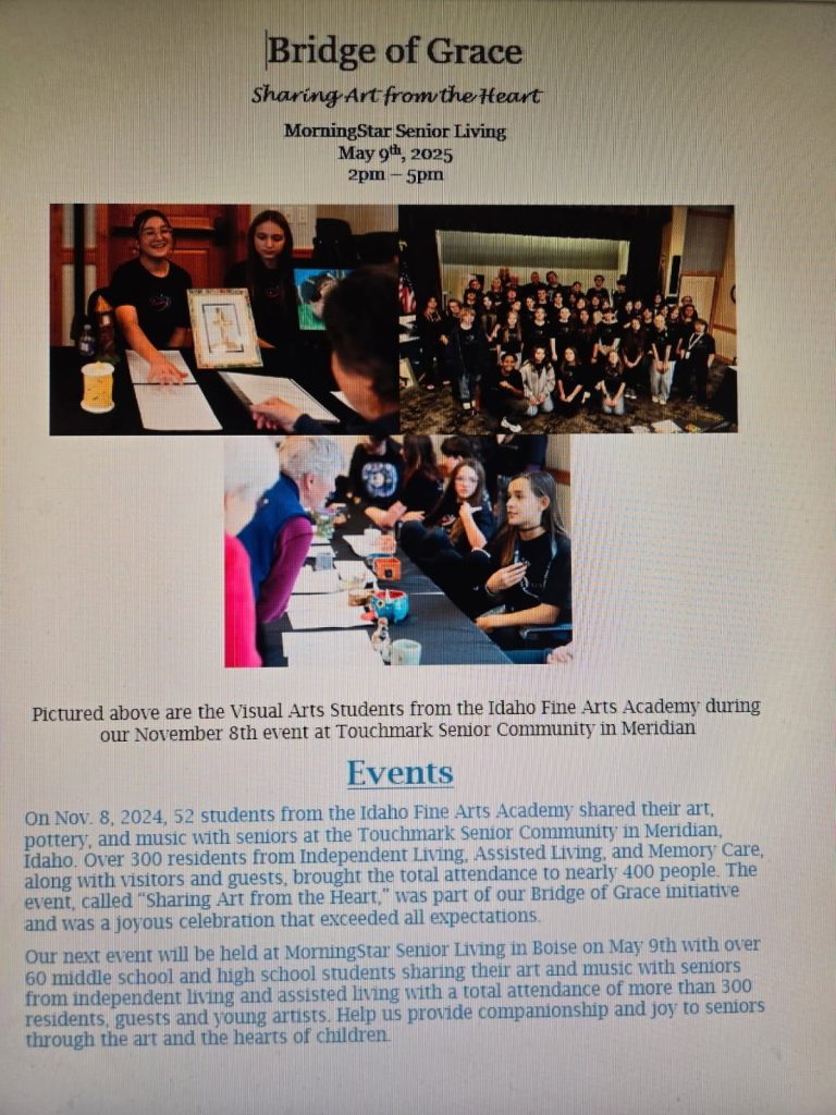 Positive Post Sunday, May 11, 2025…. Week 428. We held our 2nd Bridge of Grace event this past Friday, May 9th at MorningStar Senior Living in Idaho (see photos attached). My experience seeing the joys of seniors and the students from the Idaho Fine Arts Academy Home | Idaho Fine Arts Academy engage in meaningful ways inspired me to write the following PPS on the value and importance of volunteerism. Here’s the link to Bridge of Grace: Home – Bridge of Grace.