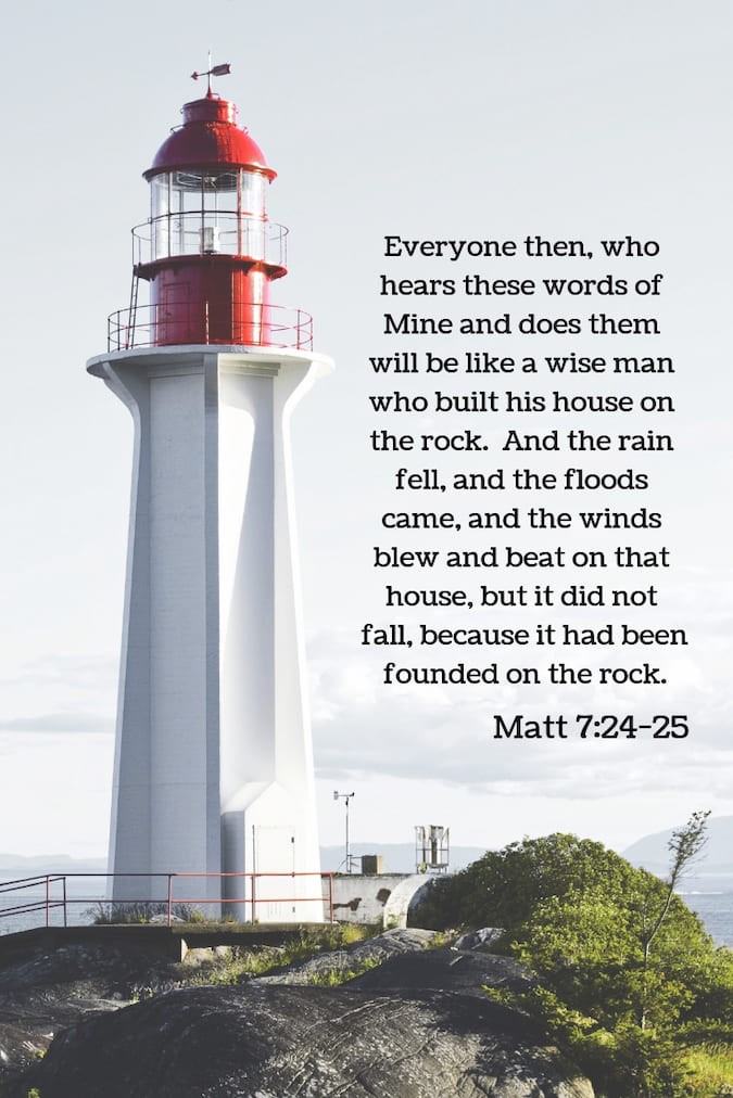 Speaking of home reminds me of Matthew 7: 24-26, “(24) Everyone who listens to these words of mine and acts on them will be like a wise man who built his house on rock. (25) The rain fell, the floods came, and the winds blew and buffeted the house. But it did not collapse; it had been set solidly on rock. (26) And everyone who listens to these words of mine but does not act on them will be like a fool who built his house on sand.”