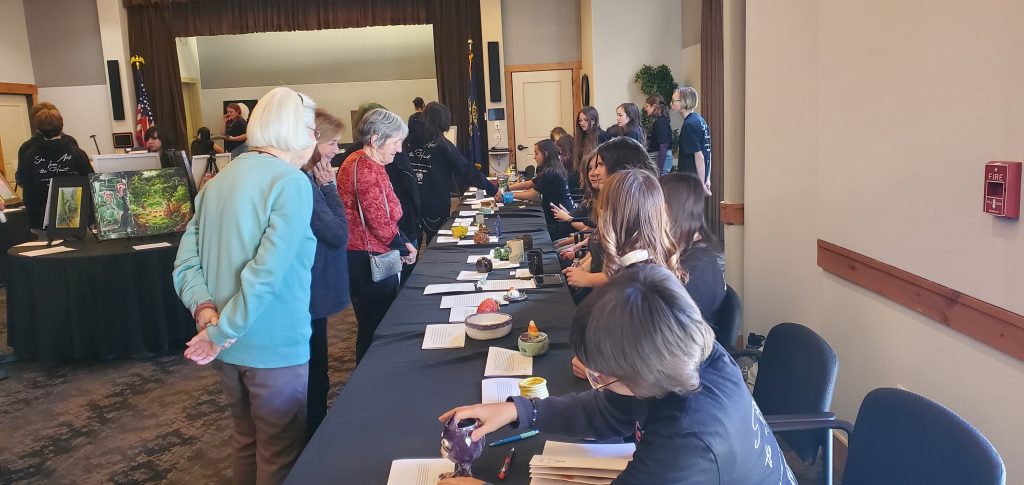 Speaking of love and service to others, now that I have had a few weeks to let it sink in, I want to share my glorious experience at our very first Bridge of Grace (Home – Bridge of Grace) event, “Sharing Art from the Heart.” God was clearly present on November 8, 2024 at Touchmark Senior Community in Meridian, Idaho (Touchmark – 2024 Pricing, Photos, Reviews in Meridian, ID). It was magical to see over 40 student artists from the Idaho Fine Arts Academy (https://www.facebook.com/idahofineartsacad) share their amazing art with many of the senior residents at Touchmark.