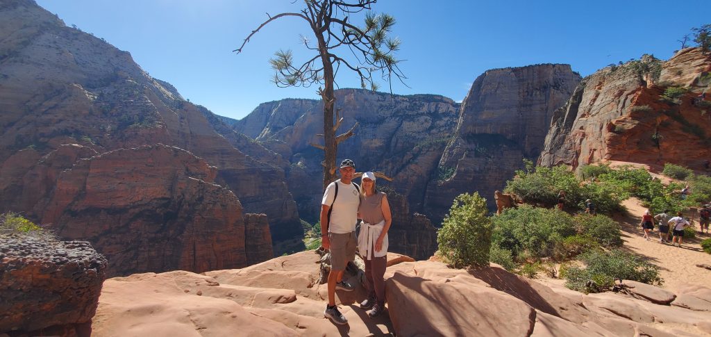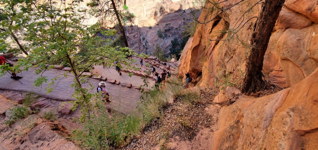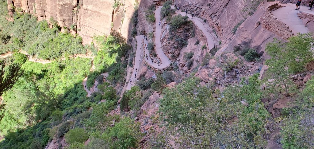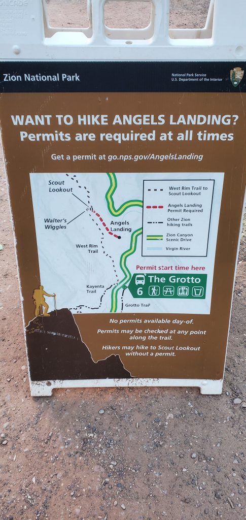 Those that are familiar with Zion National Park know that at the top of Walter’s Wiggles, starting at Scout Lookout, is a more traitorous part of the Angels Landing climb where there are chains and poles to assist you. As you can see from the map attached, you need a permit to climb it. Unfortunately, we didn’t get a permit. I guess we’ll have to climb back up there and complete the adventure next time we go to Zion National Park!