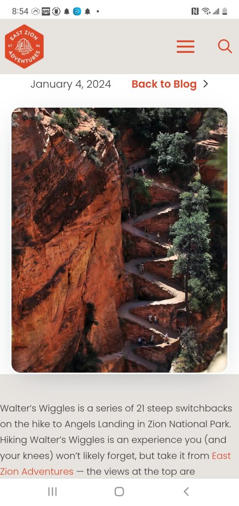 Positive Post Sunday, June 22, 2025…. Week 434. Have you ever heard of Walter’s Wiggles? No, it’s not the name of a new dance or a song😊. Avid hikers and National Park enthusiasts know what it is! Walter’s Wiggles is a very challenging and intense hike in Zion National Park. As you can see from the photos attached, it’s a set of 21 very steep switchbacks 1.8 miles into the Angels Landing hike ending at Scout Lookout just before the final Angels Landing climb.
